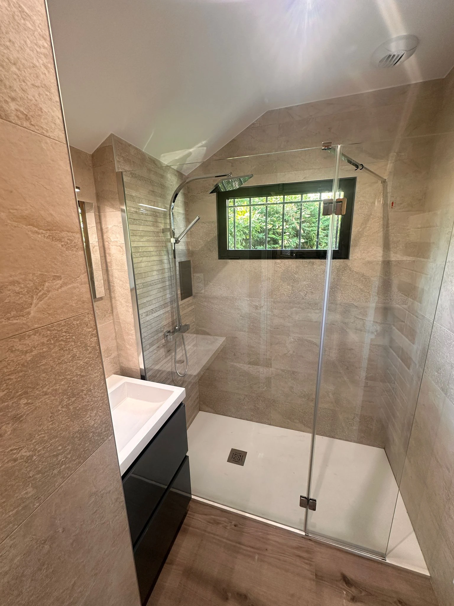 Rénovation complète d’une salle de bain : douche extra-plate, réseaux modifiés et ventilation optimisée