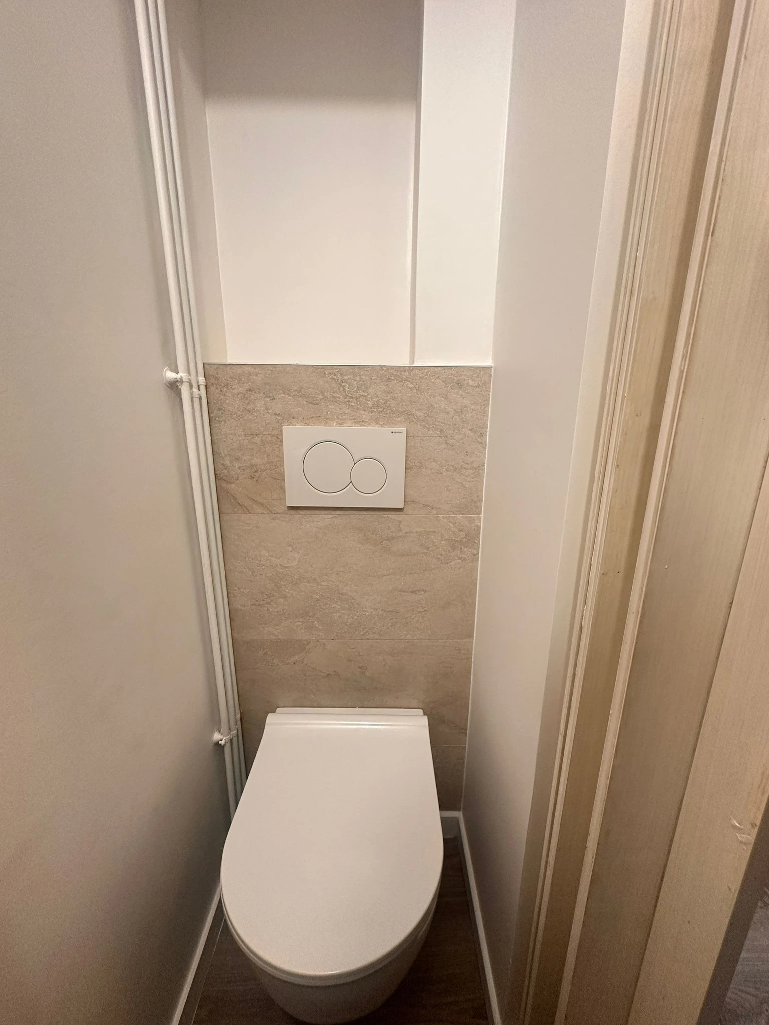 Enfin, le chantier a inclus un important travail sur les réseaux : la reprise de l’ancien réseau d’évacuation en fonte, fréquemment bouché, ainsi que la création d’arrivées d’eau et d’évacuations au sous-sol pour l’installation future d’une machine à laver.