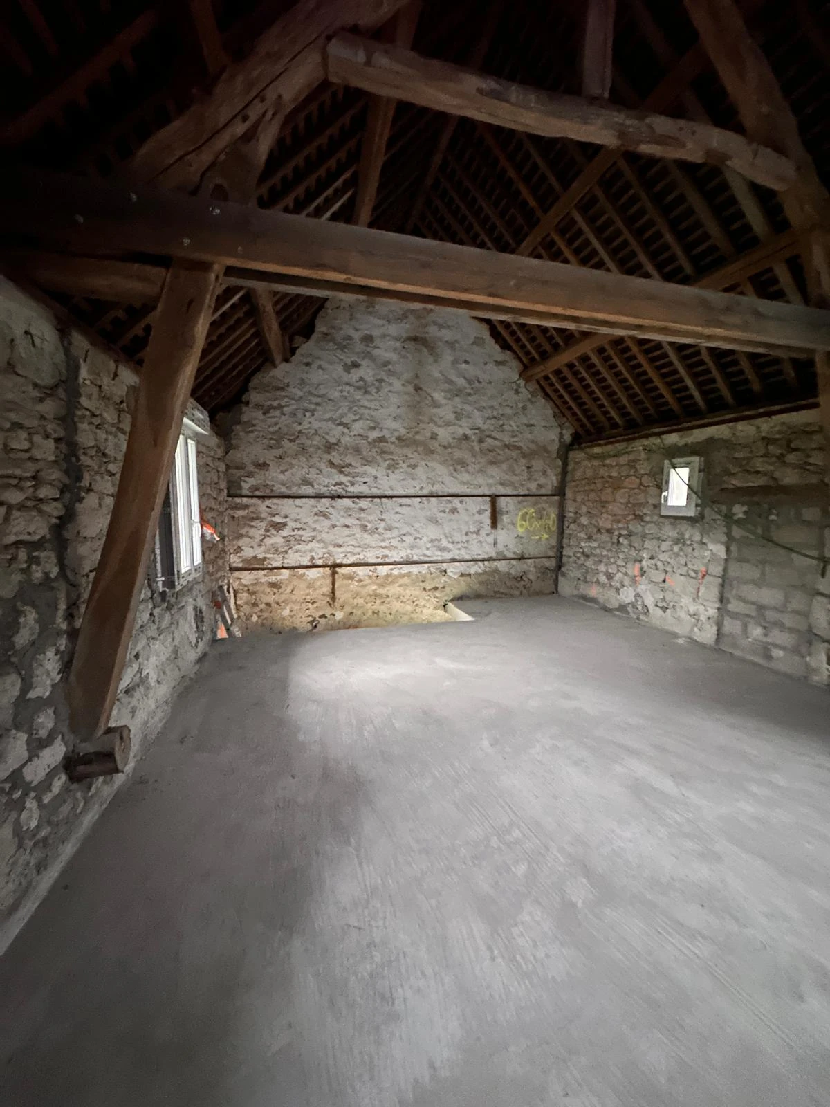Chez UNIABAT, nous avons mené la rénovation lourde de cette grange en pierre située dans l’Oise, à proximité du Val-d’Oise (95). Ce chantier d’envergure a nécessité une intervention technique approfondie tout en respectant le caractère du bâti ancien. La première étape a consisté à remplacer le plancher bois très dégradé par un plancher béton en poutrelles-hourdis, offrant une solidité durable et une base parfaitement stable pour les futurs aménagements.