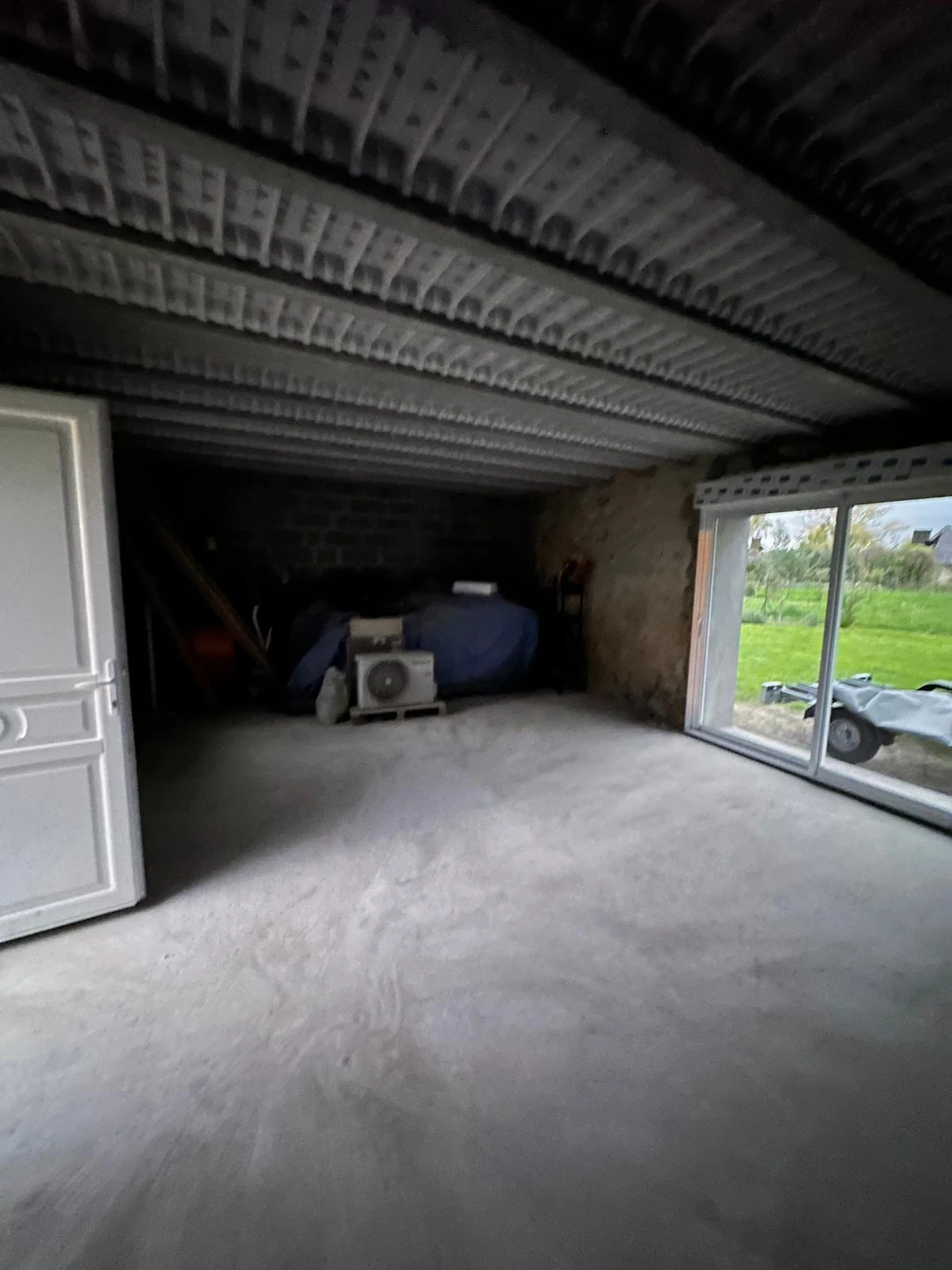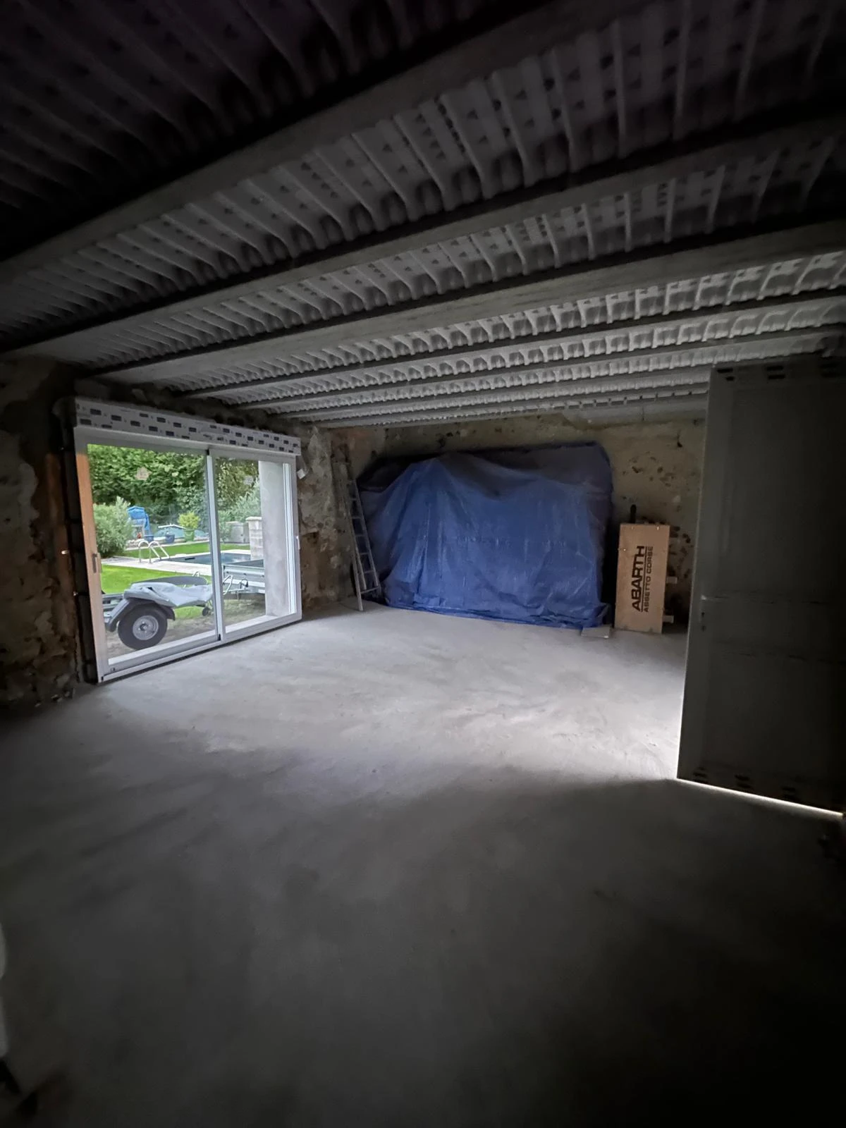 Rénovation lourde d’une grange en pierre par UNIABAT (Oise – proche Val-d’Oise 95) : plancher béton, charpente et grande baie coulissante